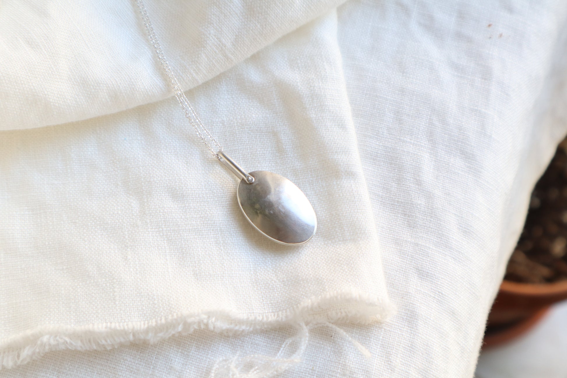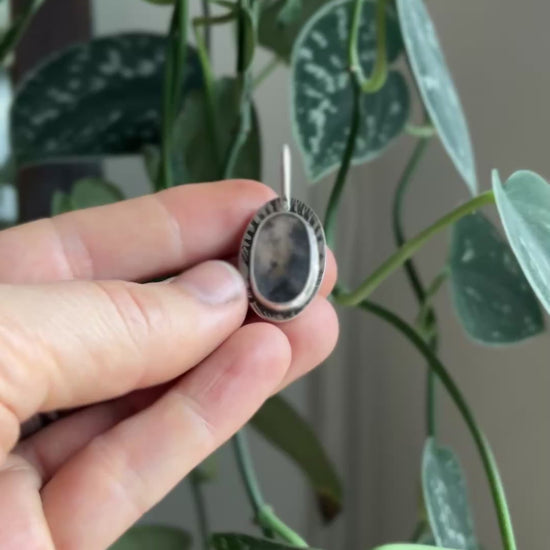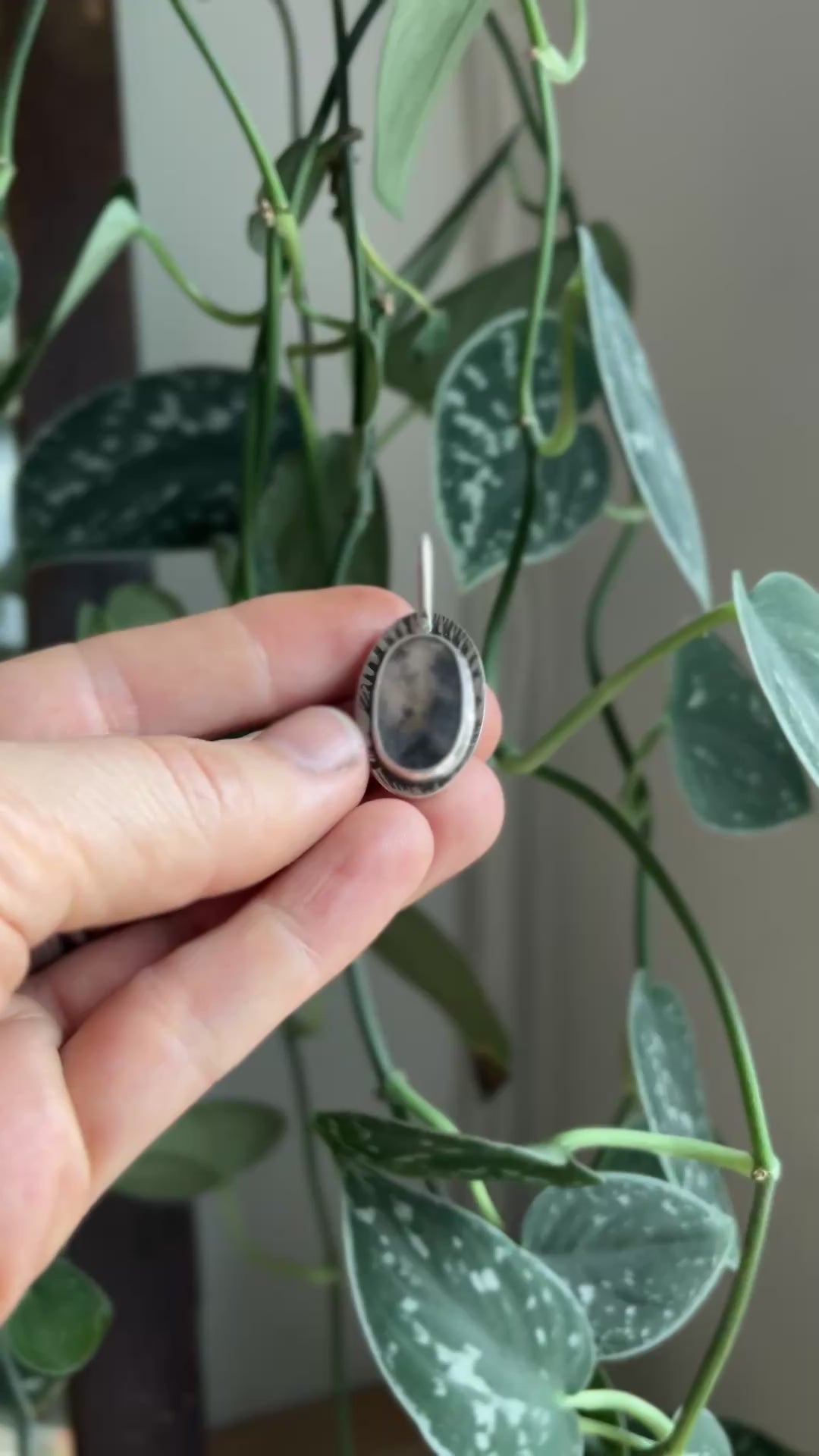 The Alder Locket is crafted in sterling silver and set with a natural brown and cream dendritic agate. It’s a stone formed over thousands of years as minerals settled within it, creating delicate, earthy markings that resemble the lines of a landscape.