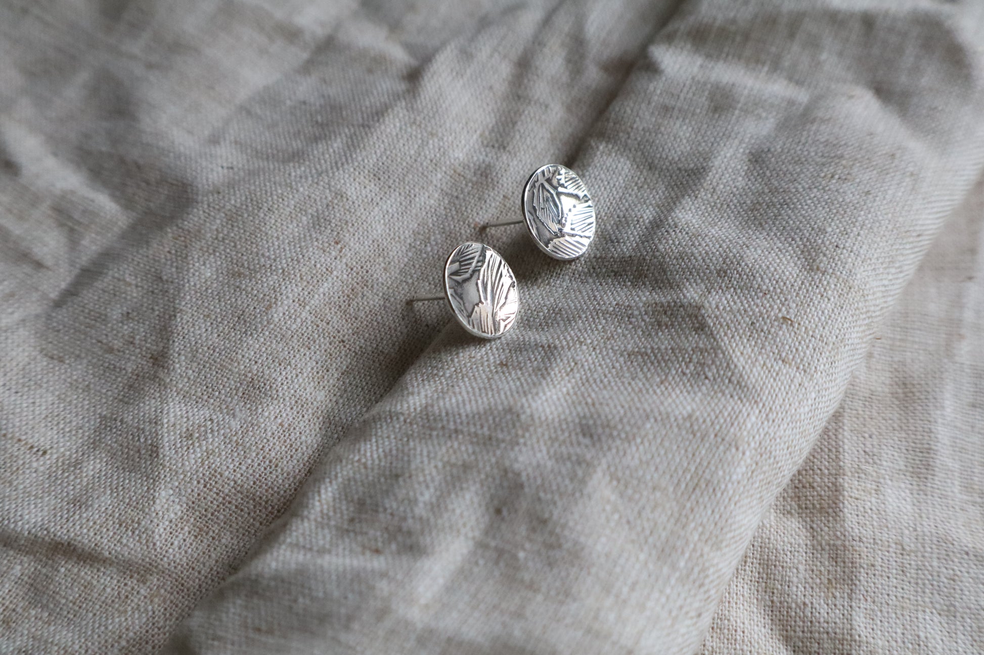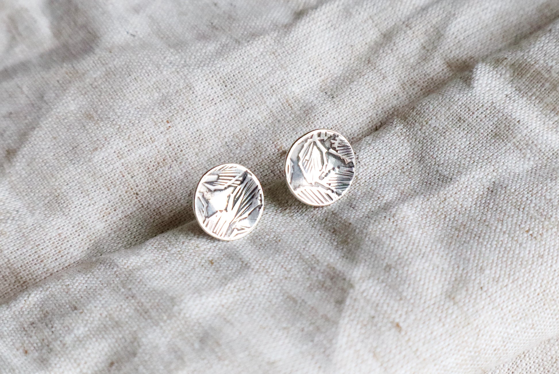 The Cove Studs are small but sculptural, with a soft scooped form that catches the light. Each pair is hand formed in sterling silver and finished with a leafy pattern, giving them an organic, textured surface. With sterling silver posts for everyday comfort, they’re an easy piece to wear on their own or layered with other earrings for a more collected look.