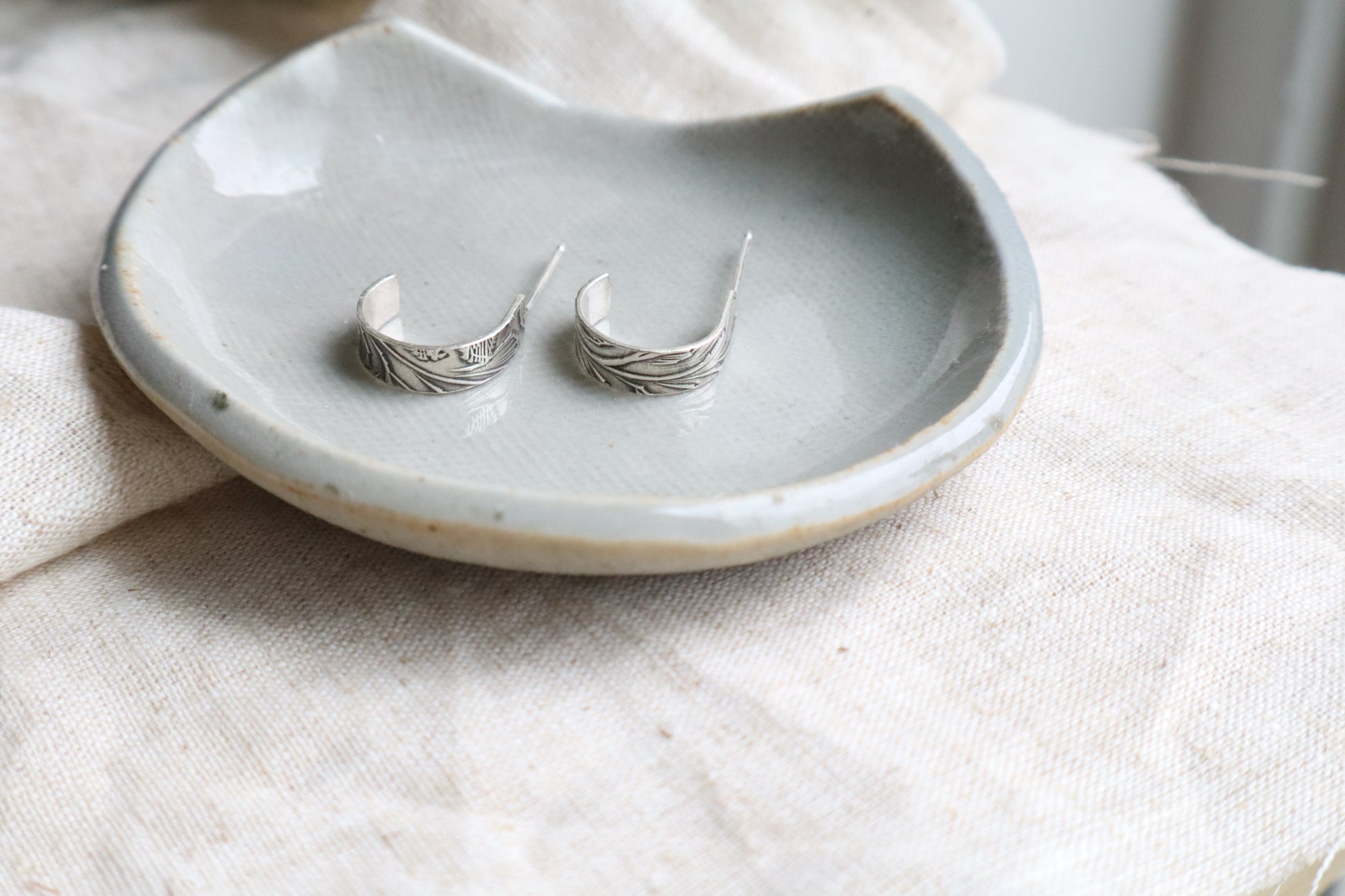 Haven hoops are an easy every day pair. Designed and crafted to feel like home. Familiar, and grounding, and always there for you! The leaf pattern is a favourite- classic and earthy. A pair you can return to again and again, no matter where the day takes you.