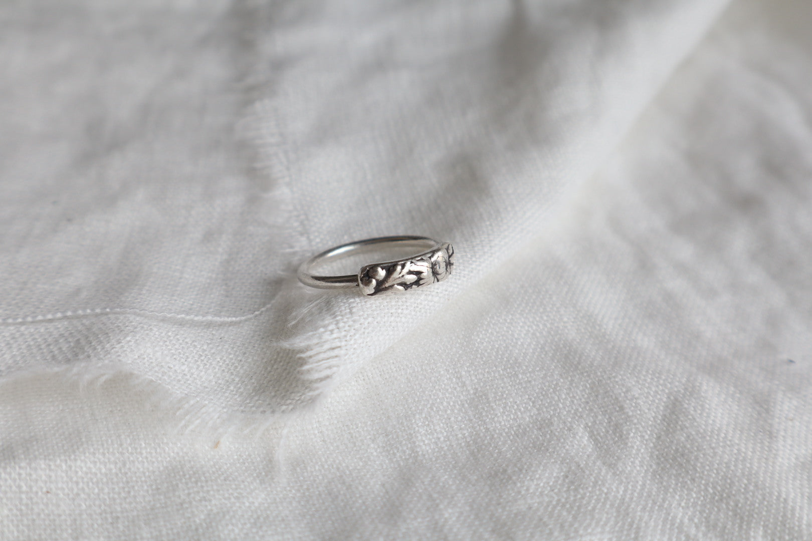 Classic and modern, Jane is a great everyday ring. Stack it with your other favourites or wear it on its own. The floral pattern is a nod to the beauty of nature and its repurposed elements carry the spirit of resourcefulness and renewal.