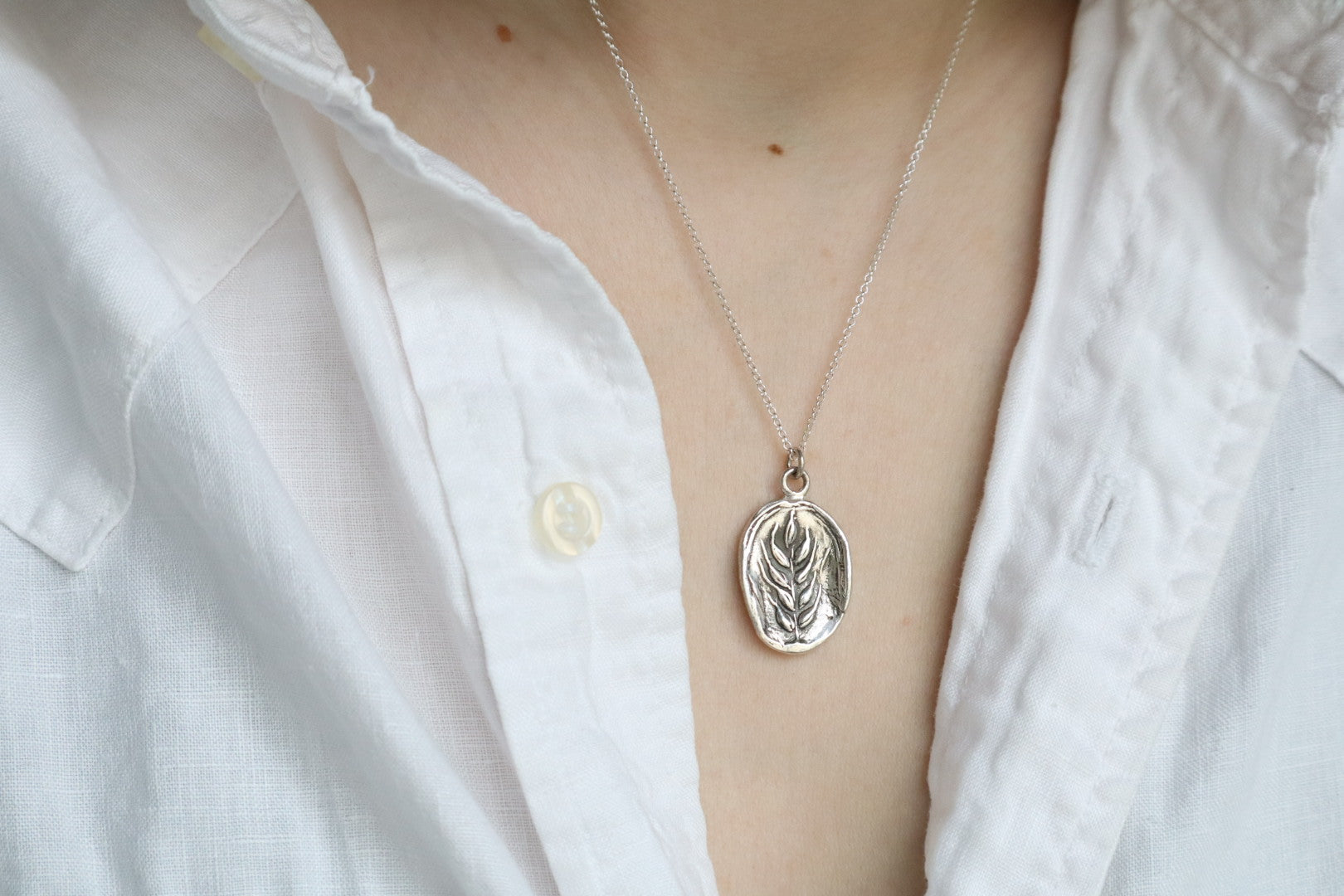 First carved in wax and then cast in sterling silver , this pendant is earthy + soulful. You can choose an 18”sterling silver chain to pair it with, or the pendant on its own and pair it with your own favourite chain